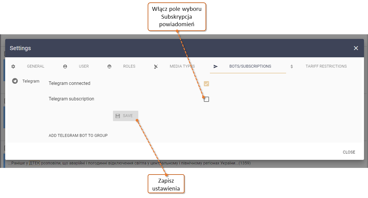 Gdy zobaczysz wiadomość w Telegramie o udanej subskrypcji, wróć do systemu i włącz funkcję powiadomień.